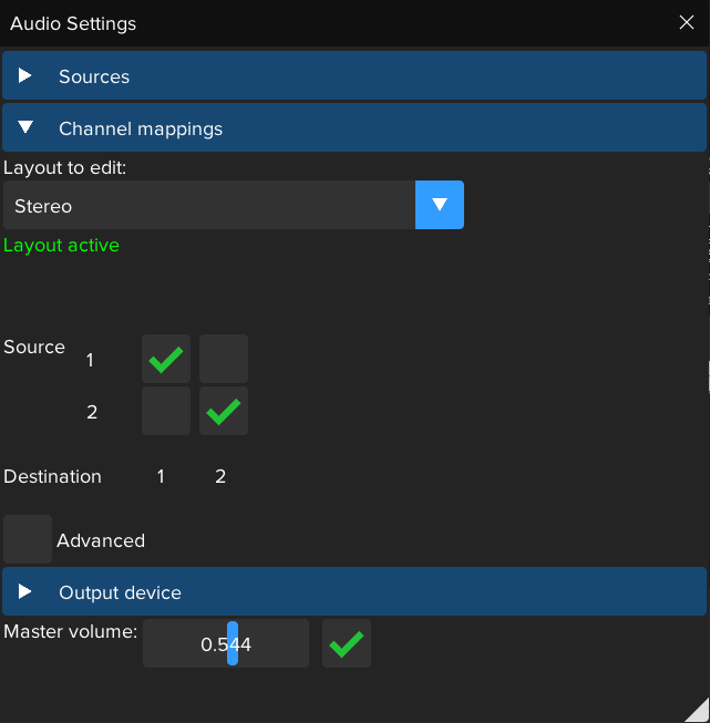 When audio sources are routed to the output device, the channel mappings dictate how the channels will be mapped. By default,