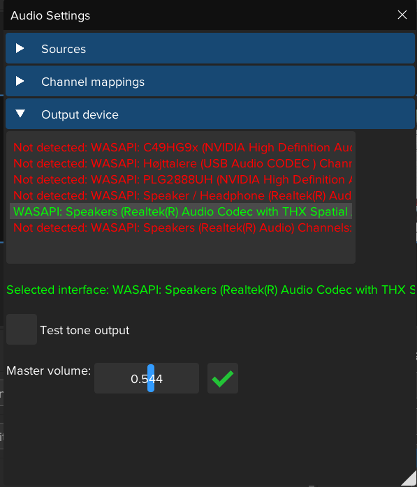 Igloo Core Engine supports WASAPI and ASIO audio devices. Select the output device from the list.