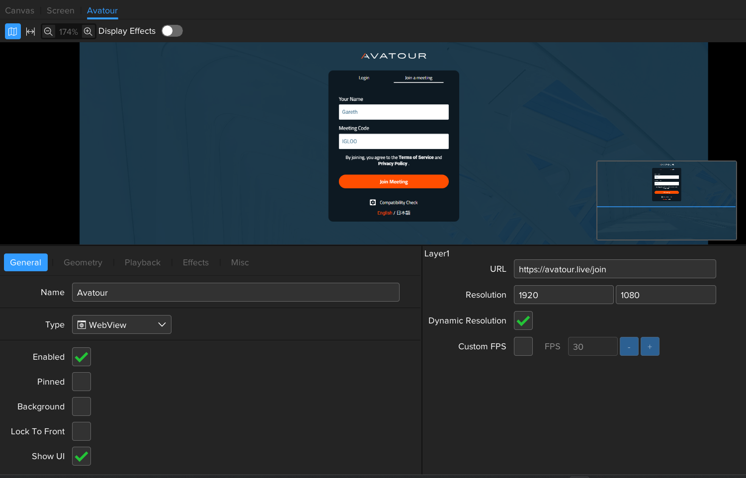 Create a WebView and set the URL to https://avatour.live/join . Enter your name in the Your Name field and enter your meeting code. Then press the Join Meeting button.