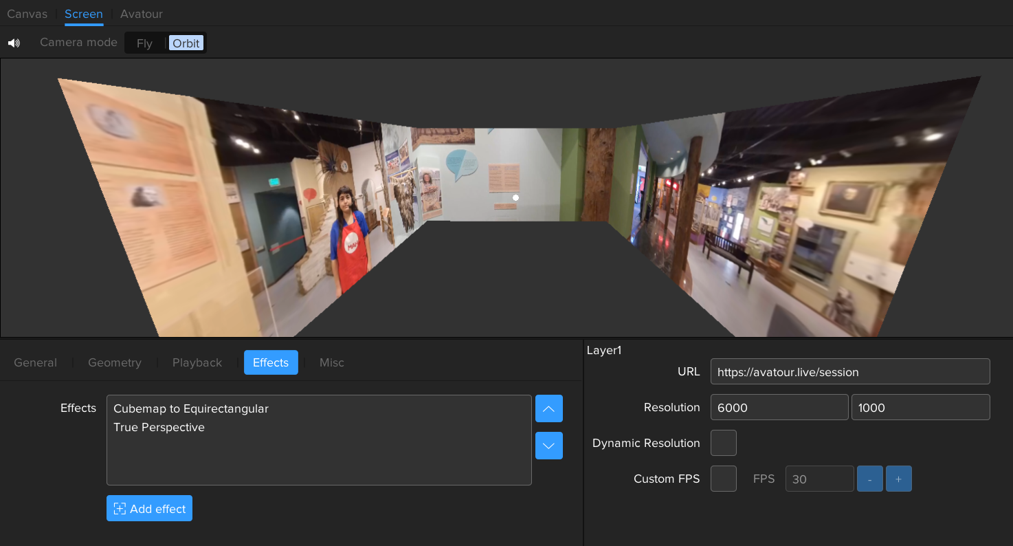 Finally, add the Cubemap to Equirectangular and TruePerspective effects so that the cubemap will display correctly in the Igloo.