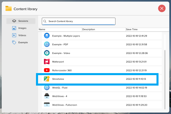 Press the Add Content button in the Canvas Toolbar and select Content Library.