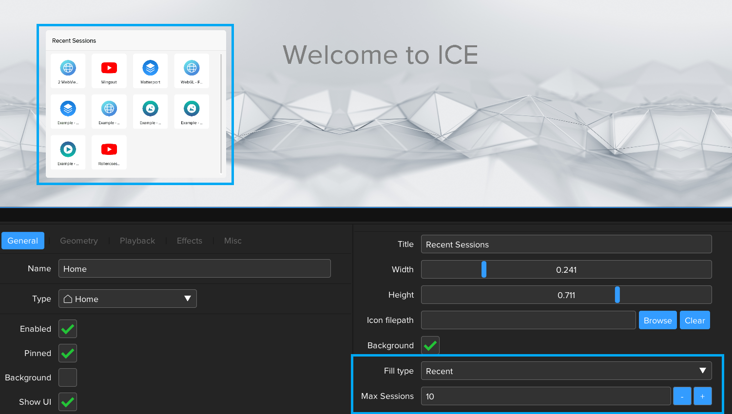 The SessionGrid on the Home layer is now populated with the most recent session icon shown in the top-left position. Notice if it shows the ‘2 WebViews’ session from the previous tutorial.