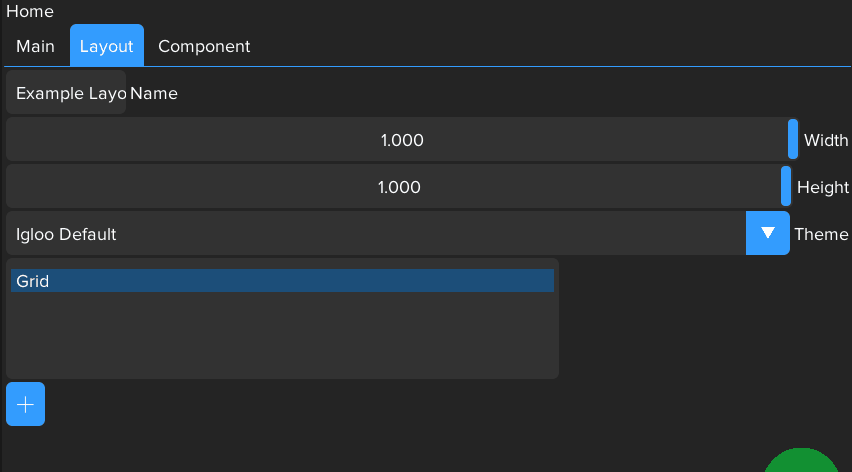 Grid Components allow the grouping and recall of Igloo Core Engine Sessions via the Home layer. The tile size is defined within the Layout theme. Tiles will be arranged dynamically based on the width and height of the grid.