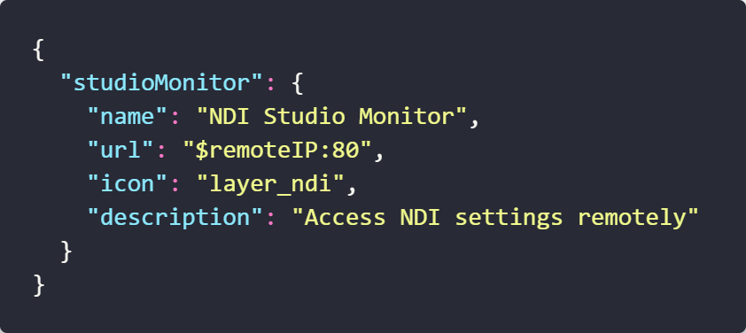 Here’s an example browser declaration for viewing the NDI Studio Monitor control page in Control Panel: