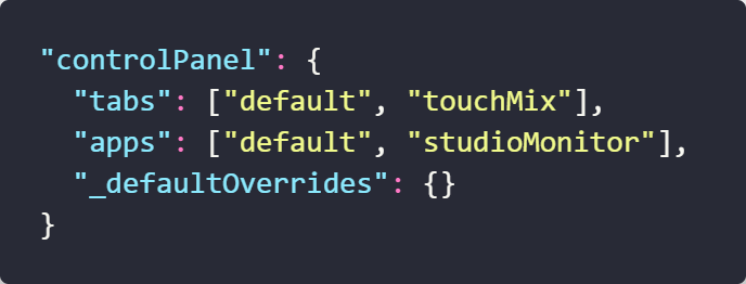 This will set the tabs to the current defaults followed by the browser defined as touchMix, and the apps to the current defaults followed by the studioMonitor browser.