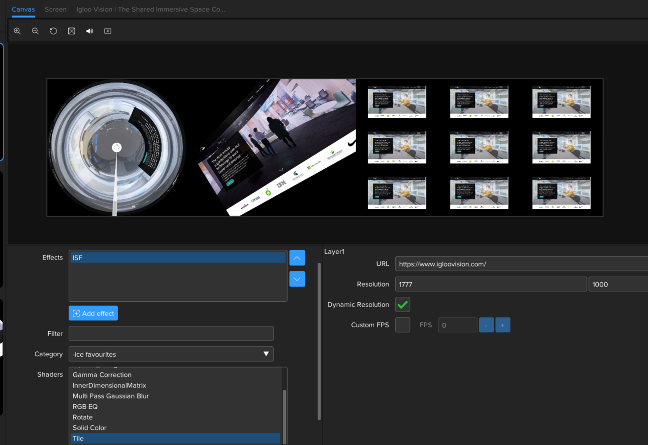 Igloo Core Engine will automatically add any ISF shaders found in the folder C:\ProgramData\Igloo Vision\IglooCoreEngine\shaders\ISF. Igloo Core Engine includes some examples, there’s also huge library user generated shaders which can be found on the ISF website https://editor.isf.video/shaders