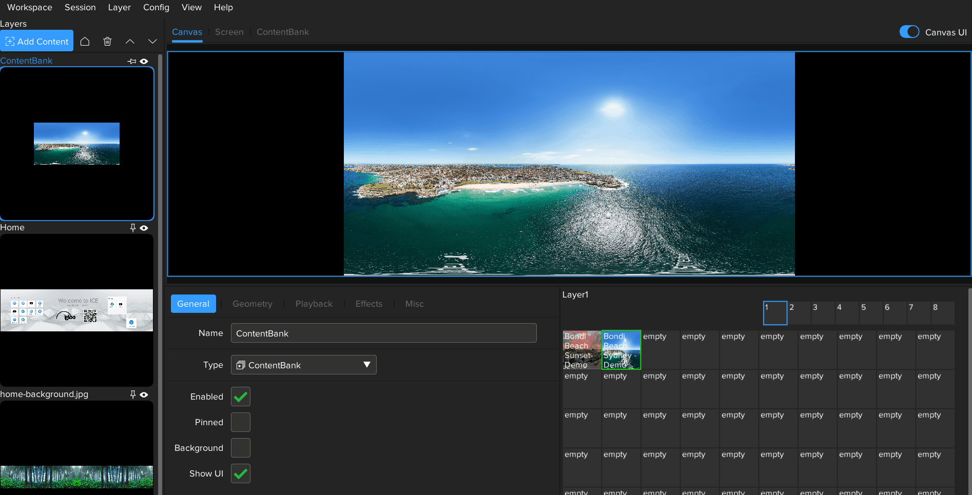 Templates provide a method for storing a single layer (of any type) with specific property values. An instance of the layer template can then be created and added to the layer list in the workspace. This is useful for layers which may contain a complicated structure, which would be time consuming to replicate from scratch. An example could be a Composition layer which contains a number of other layers.