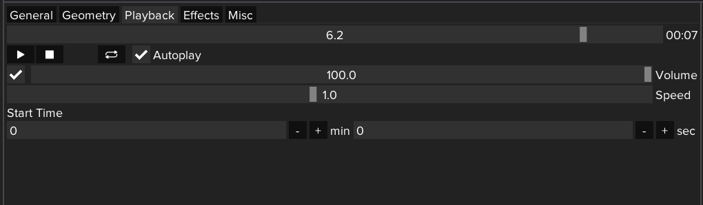 The Playback tab will show playback controls for any layer which contains a video source, or a source containing audio.