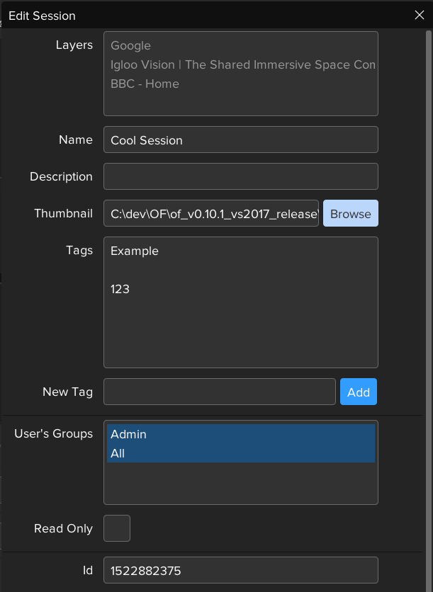 In the absence of a custom thumbnail, a default thumbnail image will be used. Thumbnails are particularly useful for session identification on a Home Layer, so try to make them visually appealing!