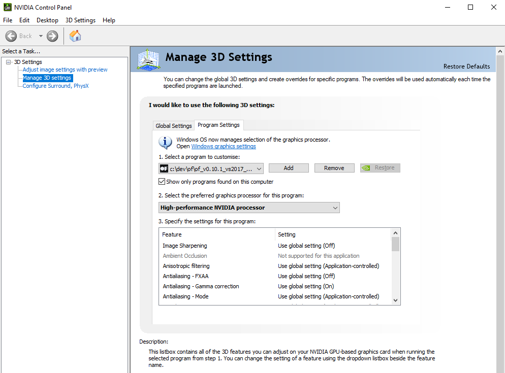 High-performance rendering GPU. This setting will only appear on some systems, typically laptops with dual GPU’s (Intel + Nvidia)