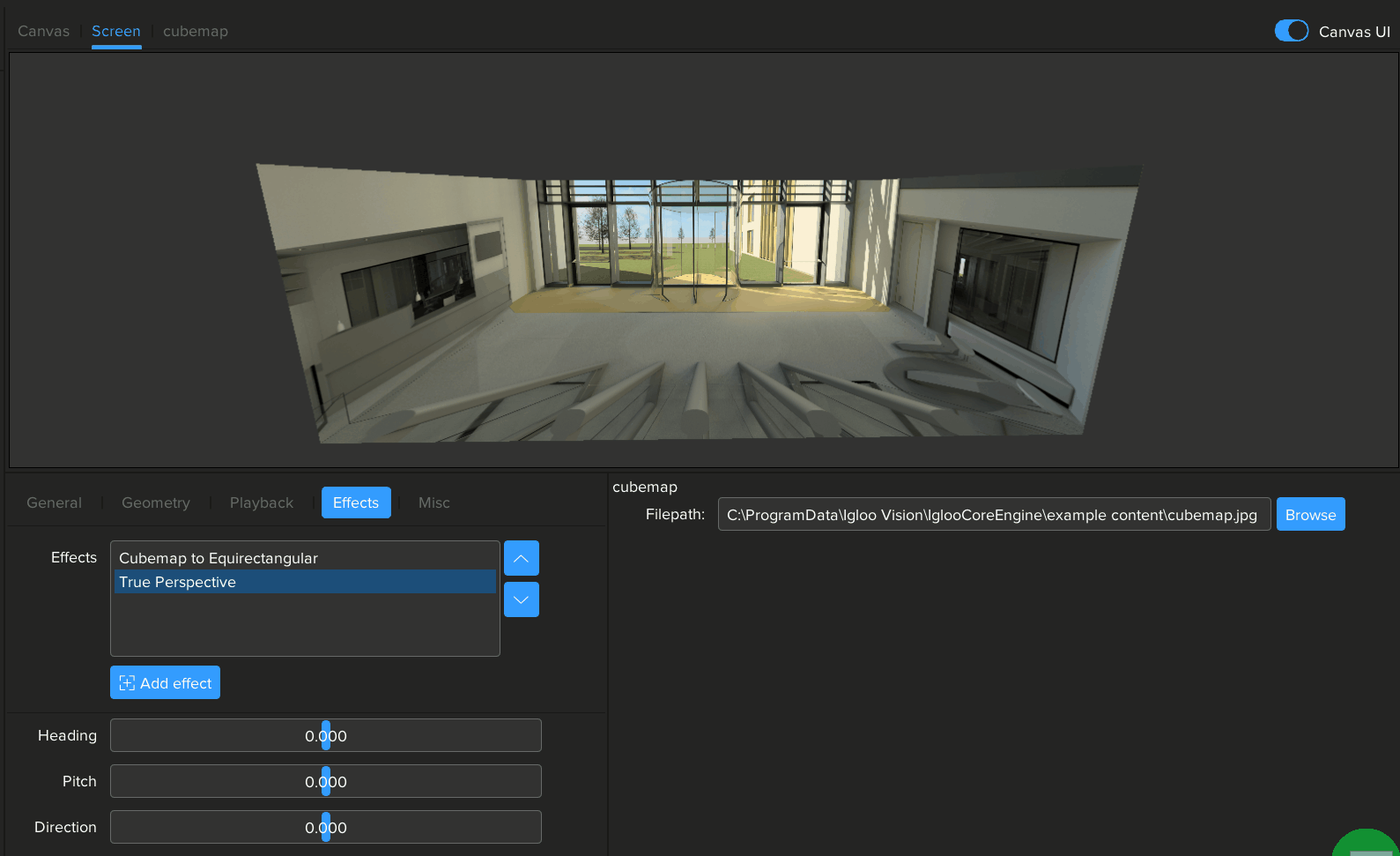 See Desktop UI - Handling 360-degree Content for an example of how True Perspective can be used